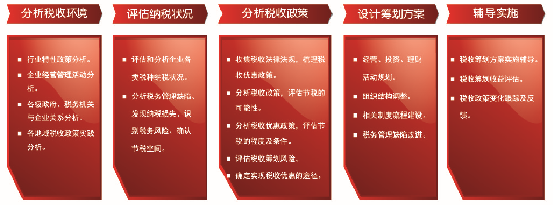 華夏經(jīng)緯以國家稅收法律法規(guī)為基礎(chǔ),通過對企業(yè)所處的稅收環(huán)境、納稅狀況、業(yè)務(wù)活動(dòng)進(jìn)行診斷,分析企業(yè)稅務(wù)管理工作不足,確認(rèn)節(jié)稅空間;分析稅收優(yōu)惠政策,對企業(yè)經(jīng)營、投資、理財(cái)活動(dòng)進(jìn)行事先籌劃和安排,為企業(yè)設(shè)計(jì)稅收籌劃整體方案,確定實(shí)現(xiàn)的方式和途徑,并輔導(dǎo)企業(yè)實(shí)施,以降低納稅成本,取得節(jié)稅的經(jīng)濟(jì)利益,提升企業(yè)競爭力。