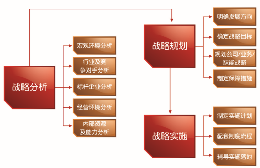 華夏經(jīng)緯憑借多年大中型企業(yè)管理咨詢經(jīng)驗,運用先進(jìn)的戰(zhàn)略工具,協(xié)助企業(yè)制定中長期發(fā)展規(guī)劃,并通過設(shè)計配套的管理制度及流程,提高企業(yè)戰(zhàn)略管理水平,同時秉承與客戶共成長的理念,協(xié)助企業(yè)落地實施,推動企業(yè)合理配置資源,增強企業(yè)的競爭優(yōu)勢。