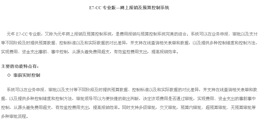 E7-CC 專業(yè)版—網(wǎng)上報銷及預(yù)算控制系統(tǒng)