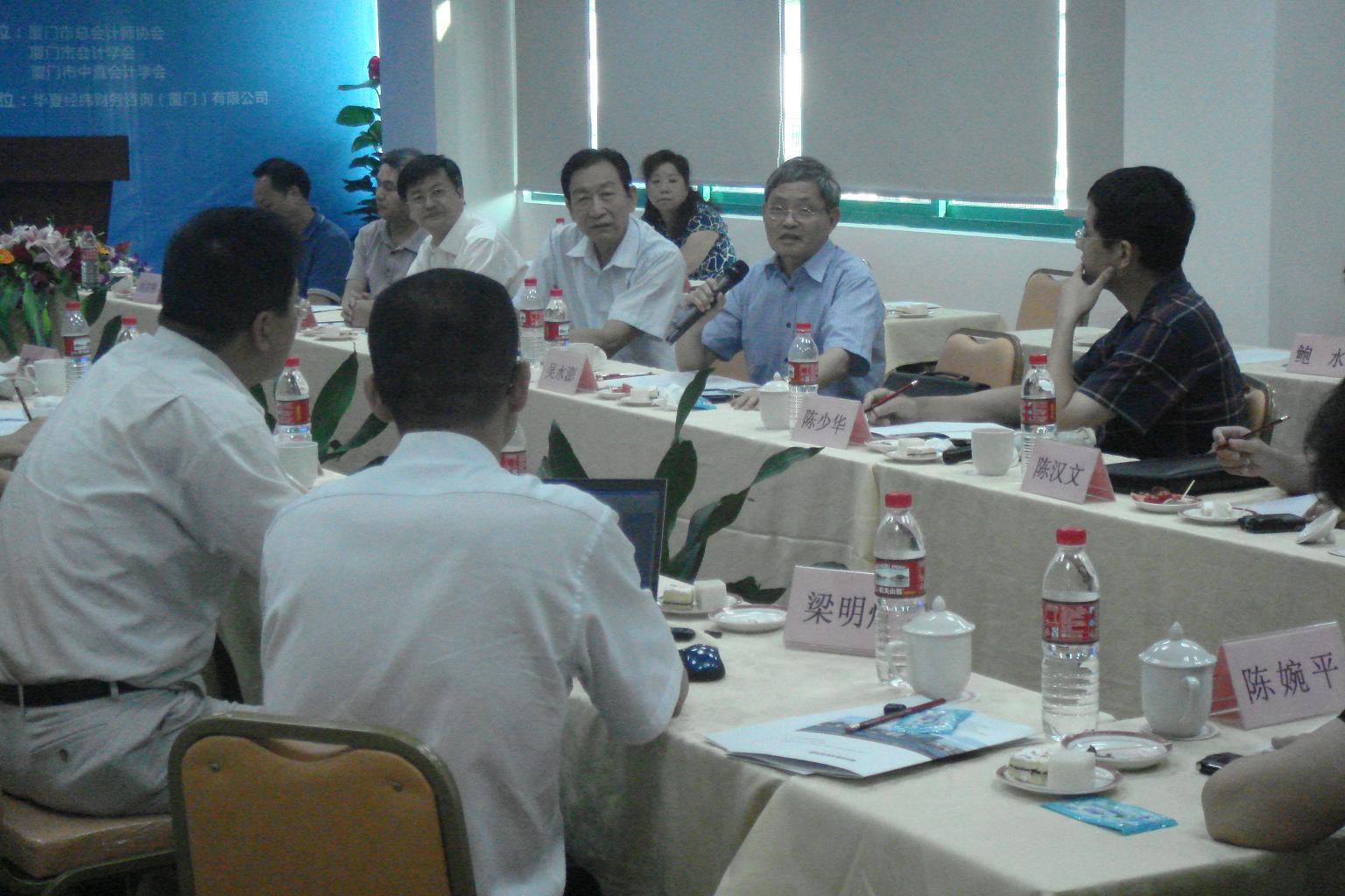 2011年8月18日下午,由廈門市總會計師協會、廈門市會計學會和廈門市中直會計學會聯合主辦、華夏經緯財務咨詢(廈門)有限公司協辦的題為“當前經濟形勢與企業(yè)財務管理”的主題論壇在廈門富興大廈B幢8樓華夏經緯會議室成功舉辦。參加論壇的有廈門市財政局領導,廈門市總會計師協會、廈門市會計學會、廈門市中直會計學會常務理事,廈門大學吳水澎、陳漢文、陳少華、傅元略等會計學資深教授、博導,美國管理會計師協會IMA中國代表李蔚,以及部分企業(yè)總會計師、財務總監(jiān)等。